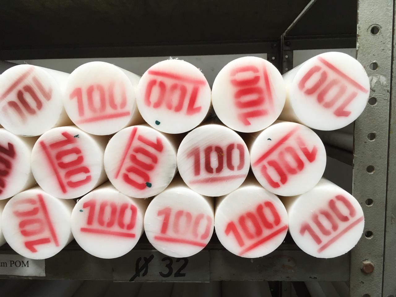 O Tubo de Poliacetal MGS (POM MGS) natural são fabricados pelo processo de extrusão e identificados com a pintura em forma de números na cor Vermelha na ponta da peça. O número indica a medida da peça em milímetros e a cor Vermelha identifica que o plástico é um Tubo de Poliacetal MGS (POM MGS).